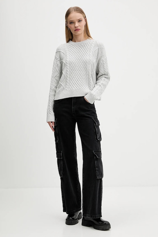 Этот свитер из коллекции Guess Jeans выполнен из трикотажного полотна с добавлением шерсти. Высокие терморегулирующие свойства шерсти помогают согреться в холод и охладиться в жару. - Свитер оверсайз обеспечивает комфорт и свободу движений. Он дополняет самые разные стили, подчёркивая непринуждённый характер любого наряда. - Классический круглый вырез. - Крой рукава со спущенной линией плеча не ограничивает подвижность. - Тонкий, эластичный трикотаж. - Рукава и нижний край отделаны удобными эластичными манжетами. - Длина рукава (от горловины): 77 см. - Длина: 57 см. - Ширина под мышками: 61 см. - Размеры указаны для размера: S.