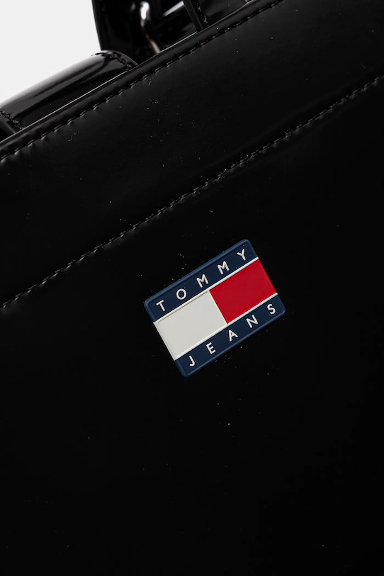 Небольшая сумочка из коллекции Tommy Jeans. Застёгивается на молнию, выполнена из искусственной лакированной кожи.
