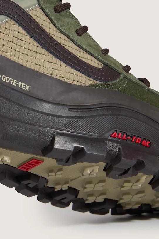 Эти кроссовки Vans изготовлены из комбинации замши, кожи и текстиля. Мембрана GORE-TEX обеспечивает высокий уровень водонепроницаемости и ветроустойчивости, а её воздухопроницаемость предотвращает перегрев. Мембрана GORE-TEX Duratherm, используемая в этой модели, обеспечивает высокий уровень водонепроницаемости, ветроизоляции и воздухопроницаемости. Утепляющая подкладка защищает от холода при температуре до -28°C. - Технология All-Trac обеспечивает очень хорошую гибкость и сцепление с грунтом. - Классическая шнуровка позволяет индивидуально подогнать обувь по ноге. - Петля сзади облегчает надевание и снятие обуви. - Внутренняя часть из флиса обеспечивает тепловой комфорт и удобство при носке.