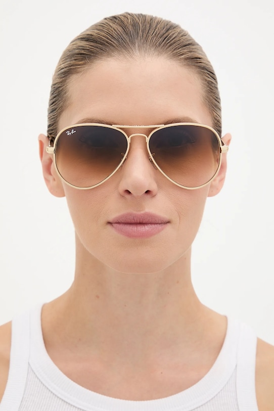 Солнцезащитные очки из коллекции Ray-Ban. Модель с градиентными линзами и металлической оправой. Защита от ультрафиолета UV 400. - Форма оправы: авиатор. - Фильтр UV 400 обеспечивает максимальную защиту от солнечного излучения. - Cat.2 (пропускает 18–43% света) - линзы со средней степенью затемнения. Очки с фильтром Cat.2 подходят для дней с низкой интенсивностью солнечного света. - В комплект модели входят чехол и салфетка для протирки очков. - Ширина рамы: 145 мм. - Ширина линзы: 62 мм.