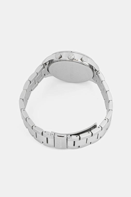 Часы из коллекции Trussardi. Модель имеет круглый циферблат и сегментированный браслет. - Модель упакована в фирменную коробку. - Стекло: минеральное (закаленное, очень устойчивое к ударам, трудно царапается). - Имеется хронограф. - Механизм: кварцевый, питание от батареек. - Водонепроницаемость: WR. 50M (5ATM) - устойчив к брызгам, плаванию на поверхности. - Ширина ремешка: 20 мм. - Толщина корпуса: 11 мм. - Диаметр корпуса: 41 мм.