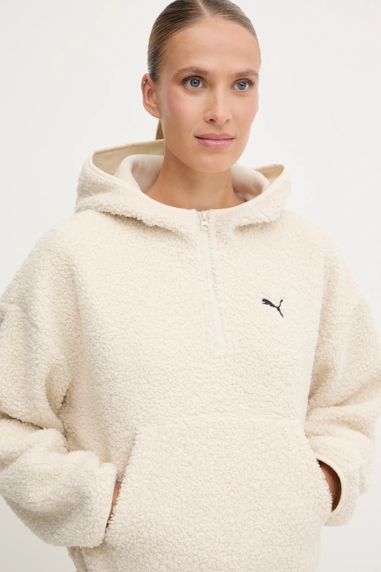 Эта толстовка с капюшоном из коллекции Puma выполнена из трикотажного полотна. Полиэстер обеспечивает повышенную устойчивость к сминанию. - Модель из линейки продукции Puma Forever Better, изготовленная из переработанных материалов. - Свободный крой, обеспечивающий полную свободу движений. - Крой рукава со спущенной линией плеча не ограничивает подвижность. - Модель с капюшоном. - Застежка на короткую молнию. - Рукава и нижний край отделаны эластичной тесьмой, благодаря чему изделие лучше прилегает к телу и удобно в носке. - Практичный вставной карман-кенгуру спереди. - Длина рукава (от капюшона): 68 см. - Длина: 54 см. - Ширина под мышками: 59 см. - Размеры указаны для размера: S.
