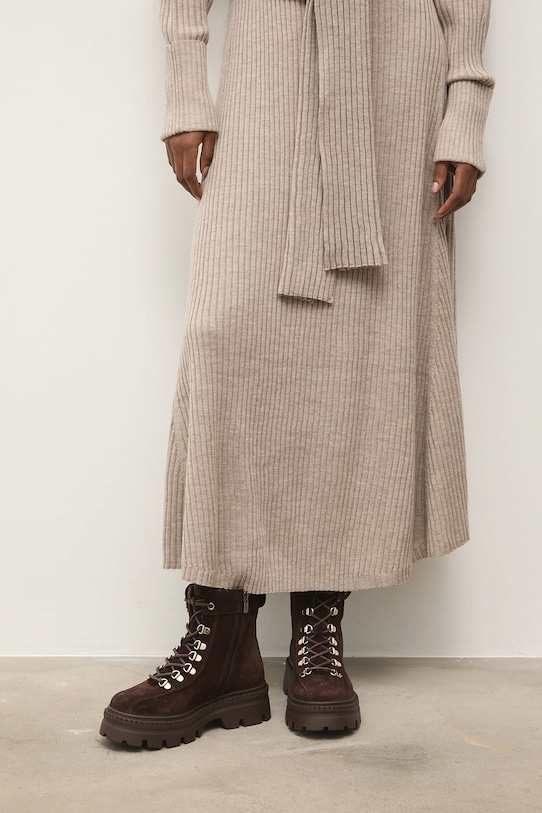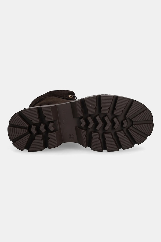 Рабочие ботинки из коллекции Answear.LAB, изготовленные из замши. Мягкий верх легко адаптируется к форме стопы. - Модель со шнуровкой и застежкой-молнией. - Классическая шнуровка позволяет индивидуально подогнать посадку. - Круглый, жёсткий носок. - Жесткий задник стабилизирует пятку и удерживает ногу в обуви, не давая ей выскальзывать во время движения. - Текстильная внутренняя часть комфортна для ног и облегчает содержание обуви в чистоте. - Платформенная модель. - Резиновая подошва прочная и устойчивая к повреждениям. - Высота платформы: 5 см. - Длина вставки: 23 см. - Размеры указаны для размера: 37.