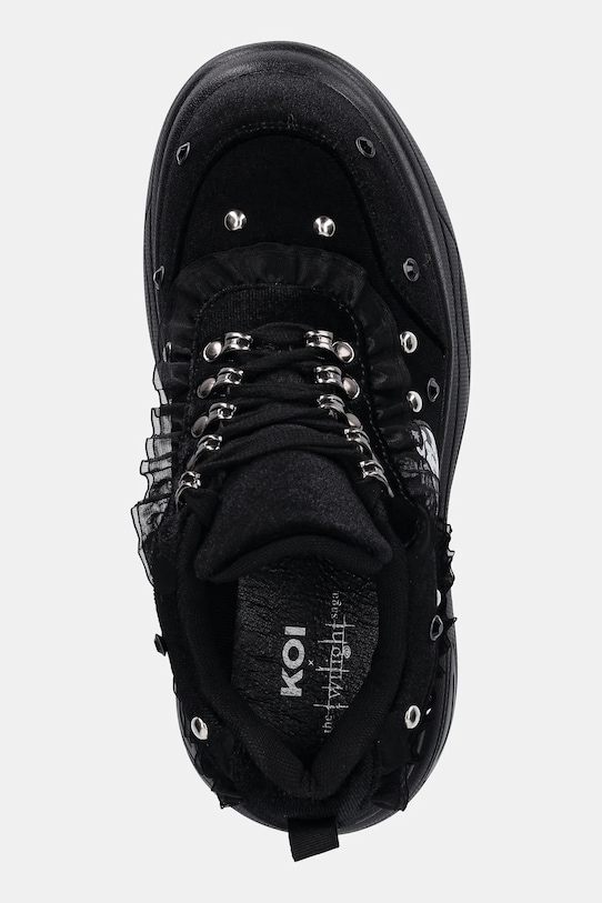 Кроссовки из коллекции Koi Footwear. Изготовленные из текстиля с аппликацией, эти лимитированные модели являются результатом сотрудничества KOI и TWILIGHT. - Круглый, жёсткий носок. - Текстильная внутренняя часть комфортна для ног и облегчает содержание обуви в чистоте. - Удобная стелька. - Усиленный задник обеспечивает отличную поддержку лодыжки и пятки. - Классическая шнуровка позволяет индивидуально подогнать обувь по ноге. - Декоративные детали. - Петля сзади облегчает надевание и снятие обуви. - Рифленая подошва. - Платформенная модель. - Высота платформы: 5 см.