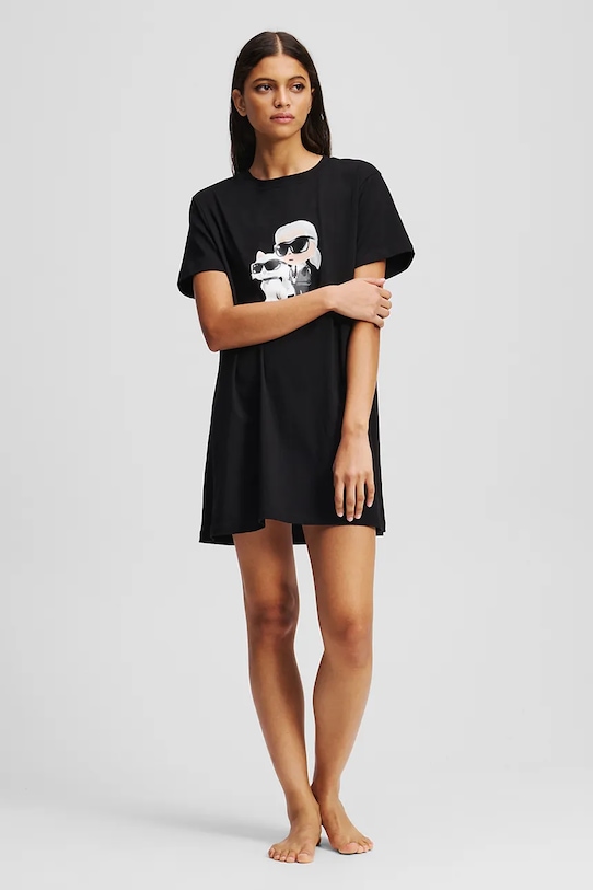Ночная рубашка IKON из хлопка Karl Lagerfeld, черный