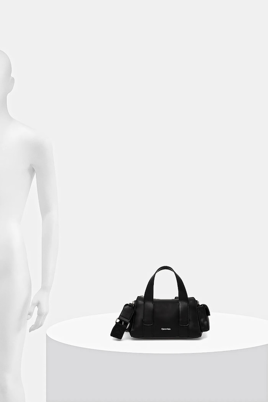 Небольшая сумочка из коллекции Calvin Klein. Модель на молнии, выполнена из синтетического материала. - Отделение на молнии. - Внутренний карман на молнии. - Боковые карманы. - Имеет ручки и съемный регулируемый ремень. - Не подходит для формата А4. - Минимальная длина ремешка: 87 см. - Максимальная длина ремня: 138 см. - Длина ручки: 32 см. - Глубина: 7 см. - Высота: 15 см. - Ширина у основания: 24 см.