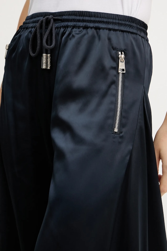 Эти брюки из коллекции Silvian Heach изготовлены из тонкой, слегка эластичной ткани. Полиэстер обеспечивает повышенную устойчивость к сминанию. - Брюки свободные в области бедер и ягодиц. - Свободная нога. - Эластичный пояс и дополнительная регулировка ширины с помощью шнурков для предотвращения сползания во время движения. - Два прорезных боковых кармана на молнии. - Плоские швы защищают кожу от ссадин и раздражения. - Ширина талии: 37 см. - Ширина бедер: 61,5 см. - Высота талии: 26 см. - Ширина штанины внизу: 65,5 см. - Ширина штанины: 32,5 см. - Длина внешней части штанины: 110,5 см. - Размеры указаны для размера: S.