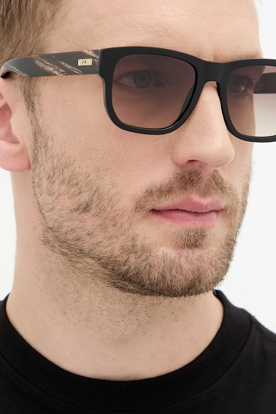 Солнцезащитные очки из коллекции Moschino. Модель с градиентными линзами и пластиковой оправой. Защита от ультрафиолета UV 400. - Форма оправы: прямоугольная. - Фильтр UV 400 обеспечивает максимальную защиту от солнечного излучения. - Cat.2 (пропускает 18–43% света) - линзы со средней степенью затемнения. Очки с фильтром Cat.2 подходят для дней с низкой интенсивностью солнечного света. - В комплект модели входят чехол и салфетка для протирки очков. - Ширина рамы: 145 мм. - Ширина линзы: 50 мм.