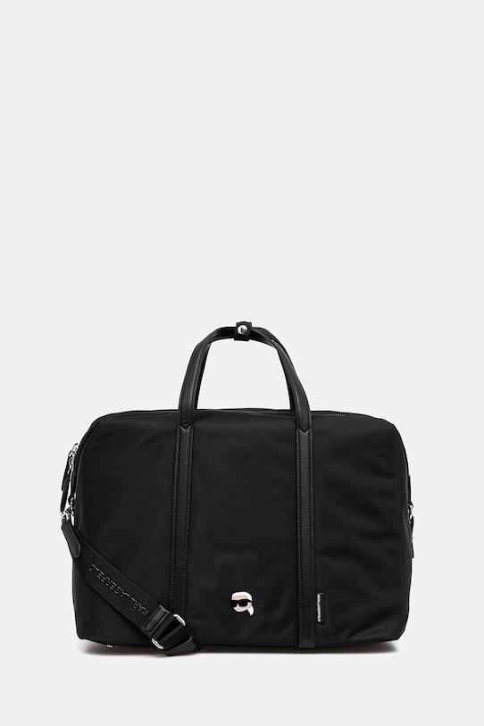 Сумка из коллекции Karl Lagerfeld. Изготовлена из текстиля. - Изделие содержит переработанные волокнистые материалы. - Вмещает формат А4. - Модель оснащена металлическими ножками, которые защищают дно сумки. - Застегивается на двустороннюю молнию. - Имеет внутренние карманы, в том числе один на молнии. - Внешний накладной карман. - Ремешок на задней панели позволяет прикрепить к ручке чемодана. - Имеет ручки и съемный регулируемый ремень. - Глубина: 22 см. - Высота: 35 см. - Ширина у основания: 42 см. - Длина ручки: 34 см. - Минимальная длина ремешка: 72 см. - Максимальная длина ремня: 98 см.