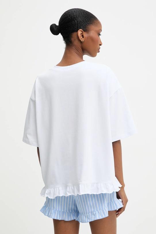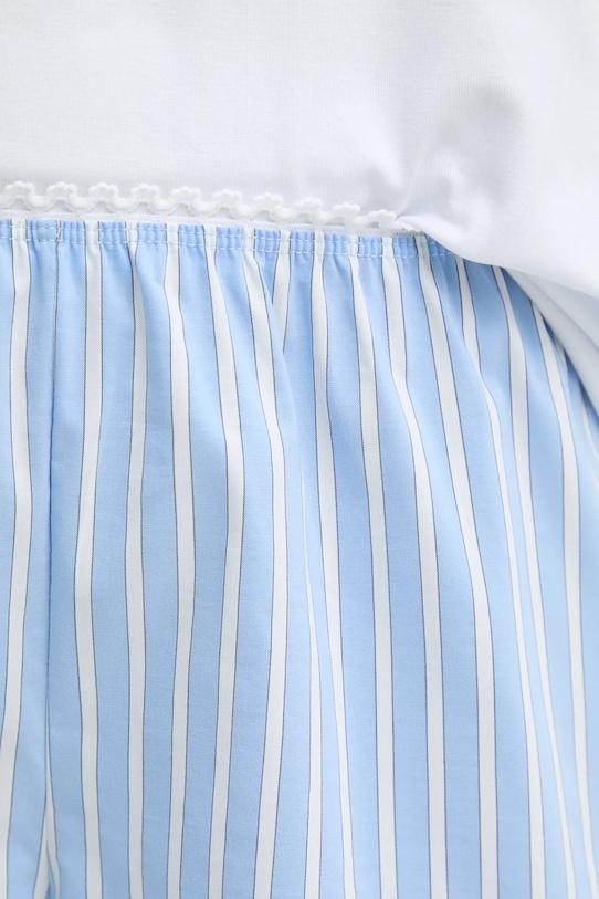 Этот пижамный комплект из футболки и шорт из коллекции Answear.Lab выполнен из комбинации различных материалов. Модель выполнена из исключительно комфортного материала с высоким содержанием хлопка. - Свободный верх и прямой низ. - Круглый ребристый вырез. - Модель с декоративной оборкой. - Кружевные вставки. - Крой рукава со спущенной линией плеча не ограничивает подвижность. - Ширина талии: 37 см. - Длина штанины: 32 см. - Длина: 63 см. - Ширина под мышками: 64 см. - Размеры указаны для размера: S.