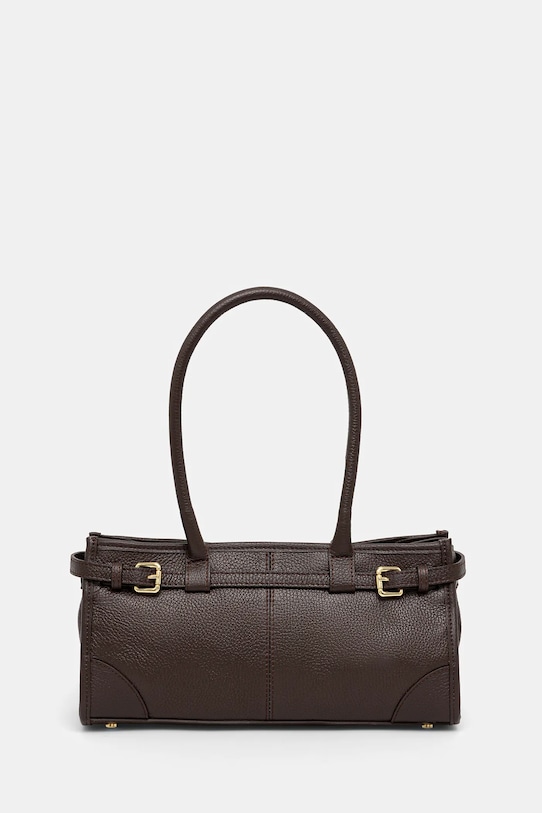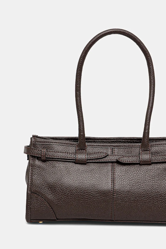 Небольшая сумочка из коллекции Answear.Lab. Модель на молнии из натуральной кожи. - Отделение на молнии. - Внутренних карманов нет. - Модель на подкладке. - Не подходит для формата А4. - Длинные ручки. - Модель оснащена металлическими ножками, которые защищают дно сумки. - Входящий в комплект тканевый чехол защищает изделие от пыли. - Глубина: 11,5 см. - Высота: 16 см. - Ширина у основания: 32,5 см. - Длина ручки: 56 см.