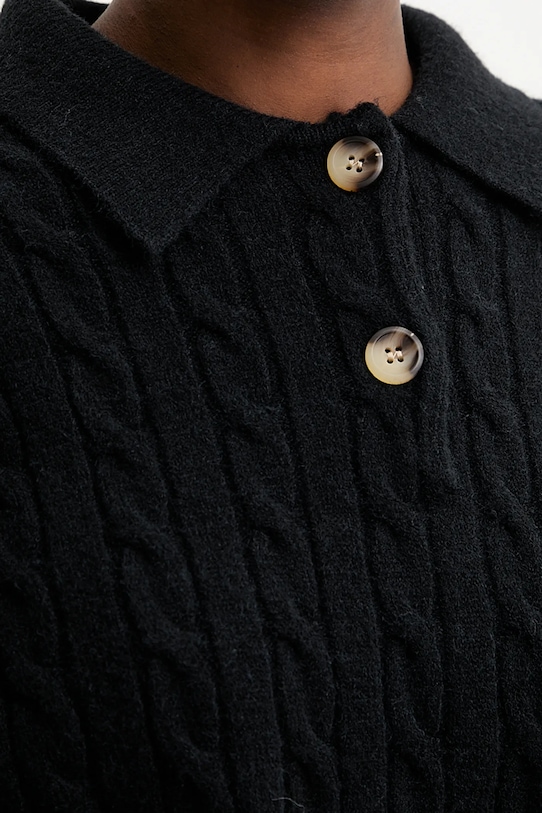 Этот свитер из коллекции Answear.LAB выполнен из трикотажного полотна с добавлением кашемира. Кашемировая шерсть обладает отличными терморегулирующими свойствами, отличается исключительной лёгкостью и пушистостью. - Свободный крой, обеспечивающий полную свободу движений. - Заниженная линия плеча. - Модель с воротником. - Короткая планка с пуговицами. - Привлекающее внимание плетение. - Длина рукава (от воротника): 68 см, - Длина: 56 см. - Ширина под мышками: 63 см. - Размеры указаны для размера: S.