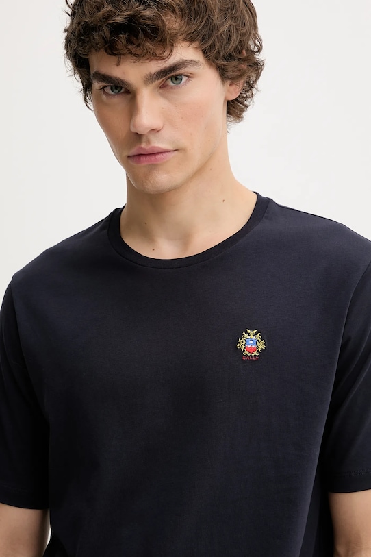 Эта футболка из коллекции Bally выполнена из гладкого трикотажного полотна. Она изготовлена из исключительно комфортного хлопкового материала. - Простой дизайн, не стесняющий движений. - Классический круглый вырез. - Короткий рукав. - Вышитый логотип бренда на груди. - Тонкий, эластичный трикотаж. - Длина: 68 см. - Ширина под мышками: 54 см. - Размеры указаны для размера: L.