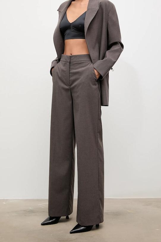Брюки из коллекции Answear.LAB изготовлены из тонкой, неэластичной ткани. Полиэстер обеспечивает повышенную устойчивость к сминанию. - Застежка на молнию, пуговицы и крючок. - Два накладных кармана спереди. - Штанина отутюживается в складку. - Прямая нога полной длины. - Имитация карманов на ягодицах. - Ширина талии: 35 см. - Ширина бедер: 45 см. - Высота талии: 29 см. - Ширина штанины внизу: 27 см. - Ширина штанины: 27 см. - Длина по внутреннему шву: 82 см. - Размеры указаны для размера: S.