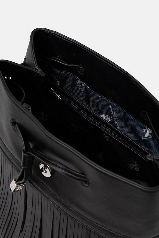 Рюкзак из коллекции U.S. Polo Assn.. Модель выполнена из экокожи. - Однокамерная модель. - Отделение затягивается шнурками и застегивается на магнит. - Три внутренних кармана: один на молнии, два накладных. - Модель на подкладке. - Не подходит для формата А4. - Короткая ручка для удобной переноски в руке. - Регулируемые ремни позволяют индивидуально подгонять их длину под пользователя. - Входящий в комплект тканевый чехол защищает изделие от пыли. - Глубина: 13 см. - Высота: 26,5 см. - Ширина у основания: 24 см.