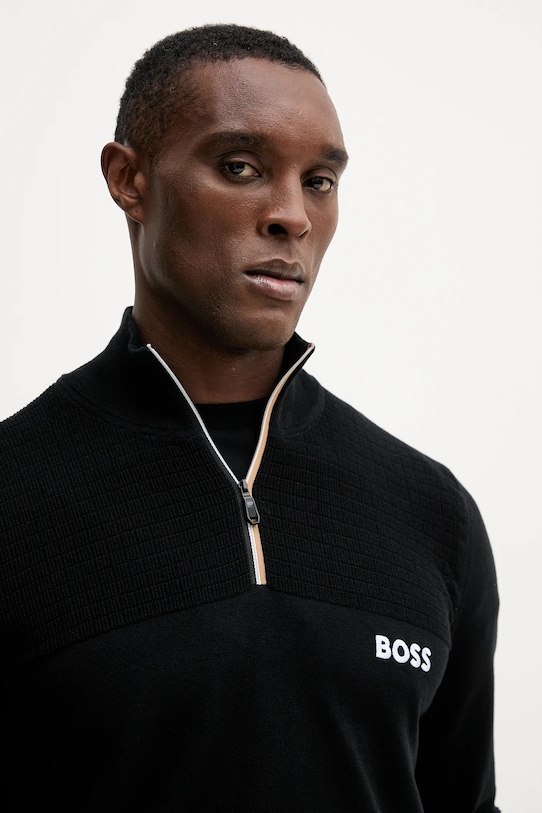 Этот свитер BOSS Green выполнен из эластичного трикотажа. Модель выполнена из исключительно комфортного материала с высоким содержанием хлопка. - Простой дизайн, не стесняющий движений. - Короткая застежка-молния обеспечивает эффективную вентиляцию и легкость надевания и снимания. - Поднятый воротник обеспечивает дополнительную защиту от холода. - Рукава и низ изделия отделаны манжетами для защиты от неблагоприятных погодных условий. - Тонкий, эластичный трикотаж. - Вышитый логотип бренда на груди. - Длина рукава: 74 см. - Длина: 76,5 см. - Ширина под мышками: 57 см. - Размеры указаны для размера: M.