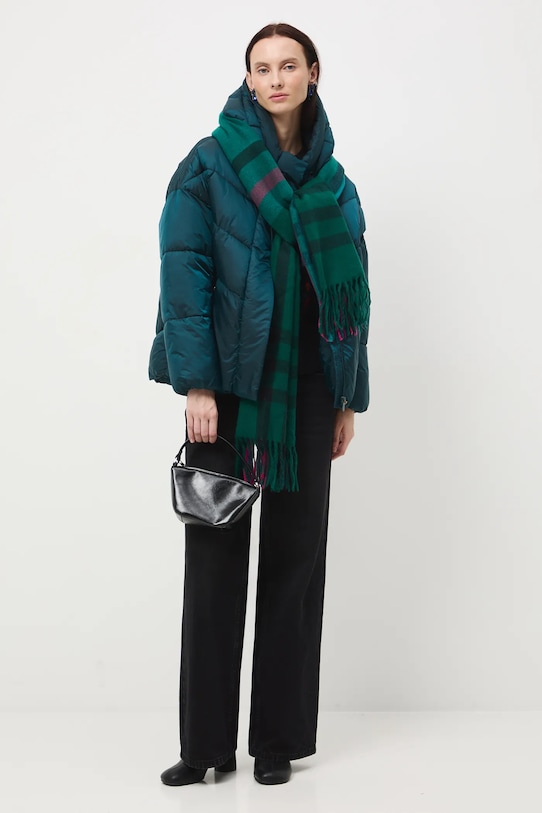 Куртка из коллекции «Medicine». Утеплённая модель из стёганого материала. - Большой размер. - Застежка-молния и кнопки. - Поднятый воротник. - Заниженная линия плеча. - Капюшон с завязками. - Два прорезных боковых кармана на молнии. - Утепленная модель с подкладкой. - Стеганая модель. - Длина рукава (от капюшона): 73 см. - Длина: 66 см. - Ширина груди: 65 см. - Ширина плеч: 71 см. - Размеры указаны для размера: S.
