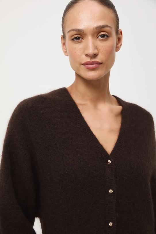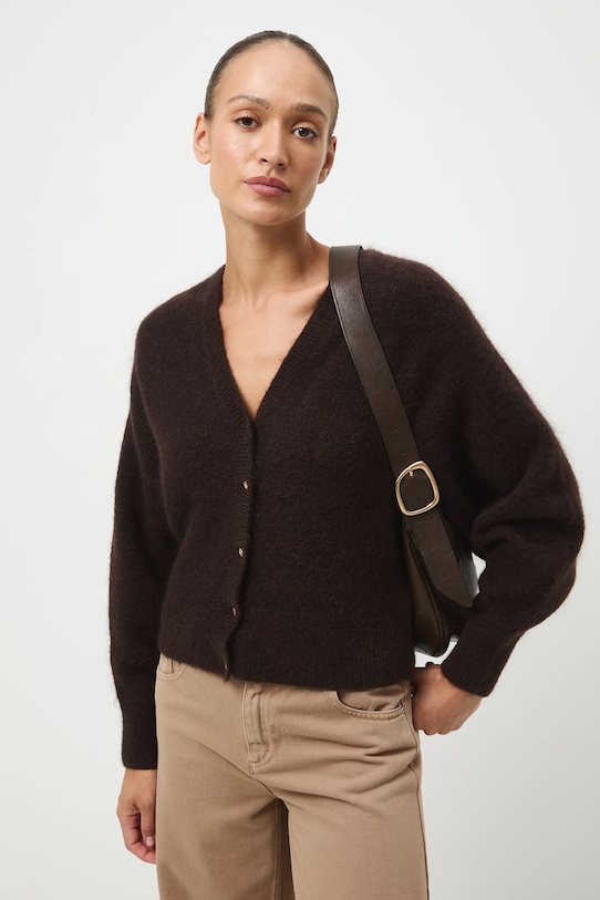 Кардиган из коллекции Medicine. Этот кардиган с острым вырезом выполнен из смеси мохера и шерсти. - Этот кардиган прямого кроя обеспечивает комфорт и универсальный образ. Он мягко облегает фигуру, не перетягивая её. Классический и простой, он прекрасно сочетается как с элегантными, так и с повседневными образами. - Длинные рукава кимоно. - Острый вырез. - Застежка на пуговицы. - Отделка ребер. - Меланжевый трикотаж. - Модель выполнена из трикотажа с добавлением мохера и шерсти. - Длина рукава (от горловины): 75 см. - Длина: 57 см. - Размеры указаны для размера: S.