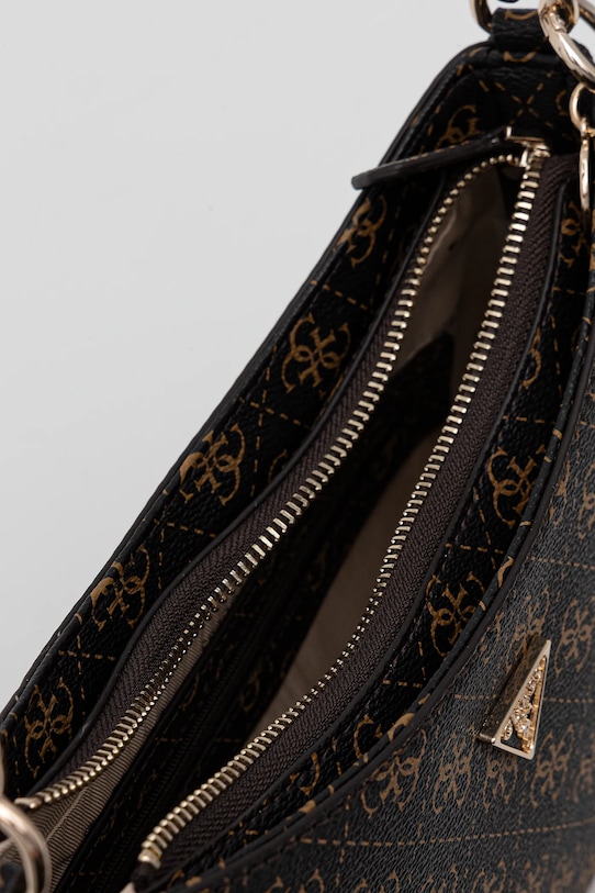Небольшая сумочка из коллекции Guess. Модель на молнии, выполнена из экокожи. - Застежка-молния. - В комплект модели входит брелок. - Съемный регулируемый ремешок. - Имеет внутренний карман на молнии и отделения для карт. - Не подходит для формата А4. - Входящий в комплект тканевый чехол защищает изделие от пыли. - Содержит переработанный пластик. - Минимальная длина ремешка: 54 см. - Максимальная длина ремня: 66 см. - Глубина: 6 см. - Высота: 19 см. - Ширина у основания: 30 см.