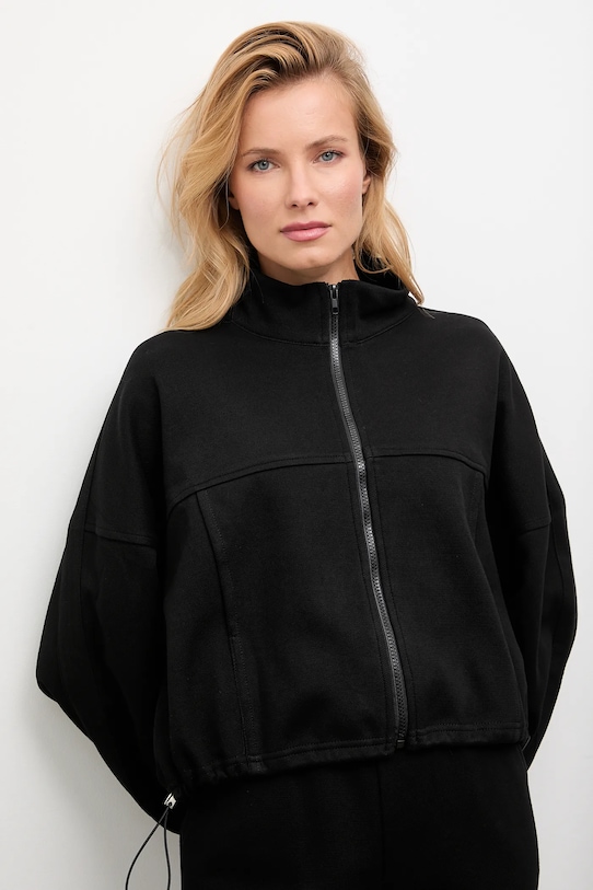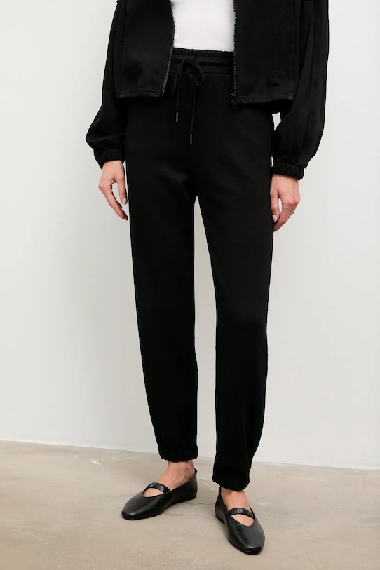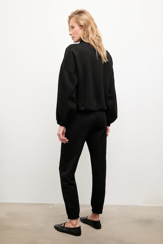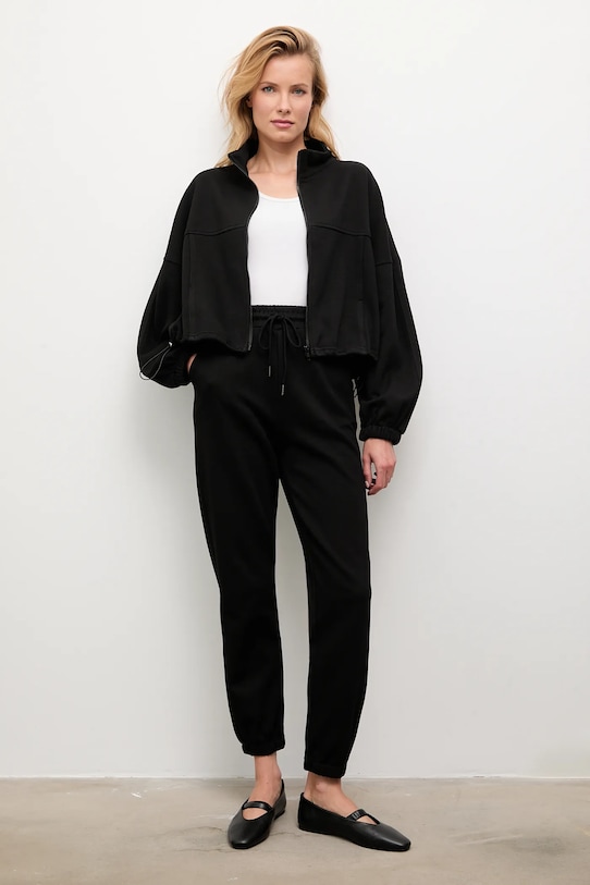 Этот спортивный костюм из коллекции Answear.LAB выполнен из эластичного трикотажа. Полиэстер обеспечивает повышенную устойчивость к сминанию. - Свободный покрой. - Крой рукава со спущенной линией плеча не ограничивает подвижность. - Застежка-молния. - Два боковых накладных кармана. - Рукава отделаны резинкой. - Нижний край отделан завязками, обеспечивающими индивидуальную посадку. - Эластичный пояс и дополнительная регулировка ширины с помощью шнурков для предотвращения сползания во время движения. - Ножки отделаны манжетами. - Длина: 52 см. - Ширина под мышками: 67 см. - Длина рукава (от воротника): 71,5 см. - Ширина талии: 31 см. - Ширина бедер: 45 см. - Высота талии: 33 см. - Ширина штанины: 30 см. - Длина внешней части штанины: 104 см. - Размеры указаны для размера: S.