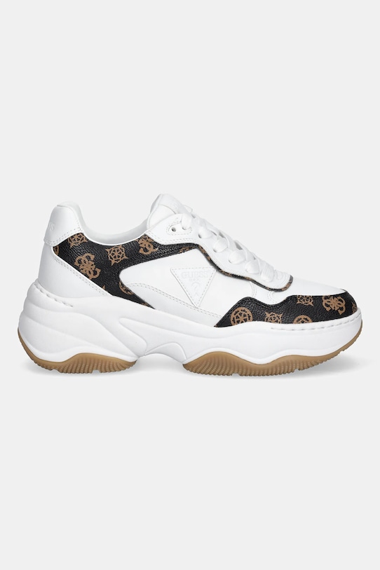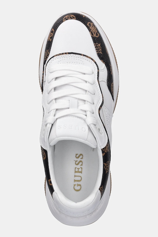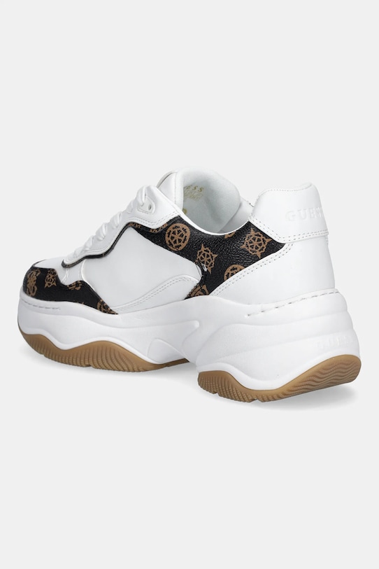 Кроссовки из коллекции Guess из искусственной кожи. Лёгкая и удобная модель, идеально подходящая для повседневной носки. - Плоские шнурки устраняют давление на подъем стопы, обеспечивая хорошую посадку и комфорт. - Круглый, сильно заостренный нос. - Усиленный задник стабилизирует пятку и удерживает ногу в обуви, не давая ей выскользнуть во время движения. - Текстильная внутренняя часть комфортна для ног и облегчает содержание обуви в чистоте. - Платформенная модель. - Резиновая подошва прочная и устойчивая к повреждениям. - Высота платформы: 6 см.