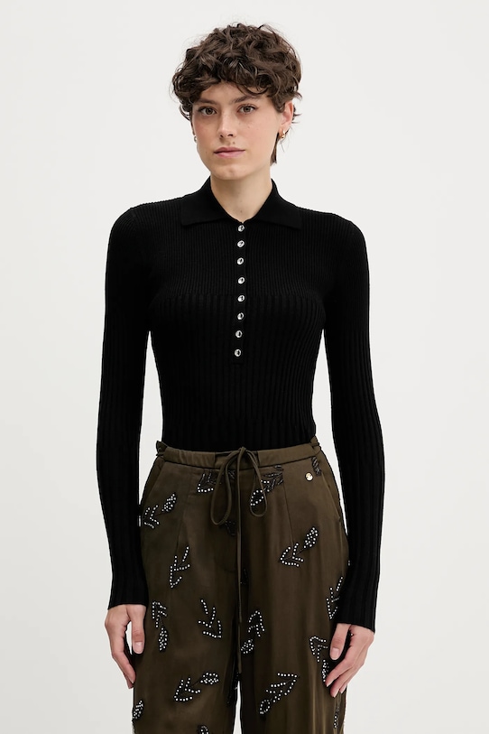 Этот свитер из коллекции Sisley выполнен из тонкой эластичной пряжи. Высокие терморегулирующие свойства шерсти позволяют согреться в холод и охладиться в жару. - Этот облегающий свитер плотно облегает тело и естественно подчёркивает силуэт. Подходит как для элегантных, так и для повседневных образов. - Мягкий воротник и короткая планка с пуговицами. - Длина рукава: 65 см. - Длина: 56 см. - Ширина под мышками: 45 см. - Размеры указаны для размера: S.