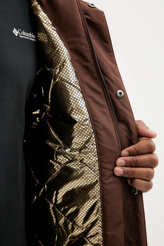 Эта куртка из коллекции Columbia. Утеплённая модель выполнена из гладкого материала. Воротник-стойка обеспечивает дополнительную защиту от холода.