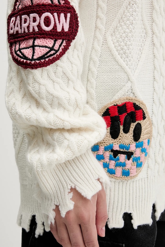 Свитер из коллекции Barrow, выполнен из эластичного трикотажа. В комплект входит брелок. - Свободный крой, обеспечивающий полную свободу движений. - Классический круглый вырез. - Крой рукава со спущенной линией плеча не ограничивает подвижность. - Модель с декоративной вышивкой. - Модель с декоративной бахромой. - Трикотаж средней толщины. - Трикотаж с различными переплетениями. - Длина рукава (от горловины): 98 см. - Длина: 77 см. - Ширина под мышками: 62 см. - Размеры указаны для размера: M.