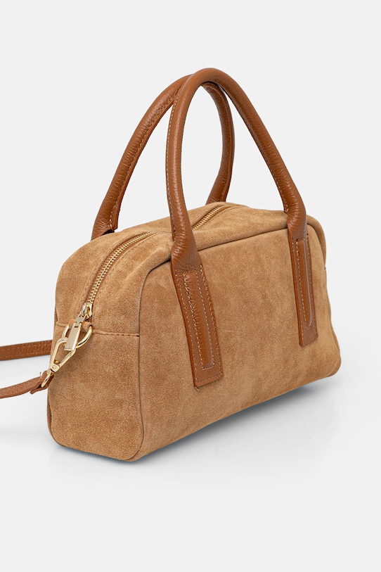 Сумка среднего размера из коллекции Answear.Lab. Модель на молнии, выполнена из комбинации замши и натуральной кожи. - Отделение на молнии. - Имеет ручки и съемный регулируемый ремень. - Внутренний карман на молнии для удобного и безопасного хранения телефона и других мелких предметов. - Модель на подкладке. - Не подходит для формата А4. - Минимальная длина ремешка: 58 см. - Максимальная длина ремня: 108 см. - Длина ручки: 36 см. - Глубина: 10 см. - Высота: 15 см. - Ширина у основания: 29 см.