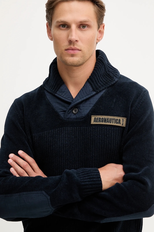 Этот свитер из коллекции Aeronautica Militare выполнен из эластичного трикотажа средней плотности. Он мягкий и приятный на ощупь. - Простой дизайн, не стесняющий движений. - Длинный рукав. - Поднятый воротник обеспечивает дополнительную защиту от холода. - Застежка на пуговицы. - Рукава и нижний край отделаны удобными эластичными манжетами. - Длина рукава: 71 см. - Длина: 73 см. - Ширина под мышками: 57 см. - Размеры указаны для размера: M.