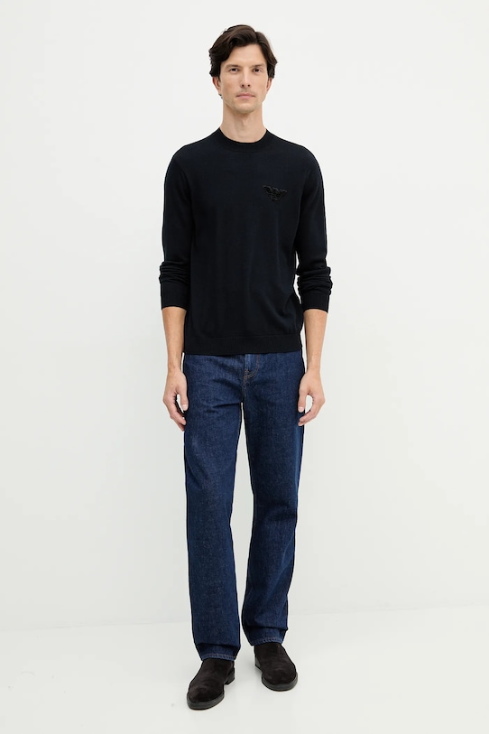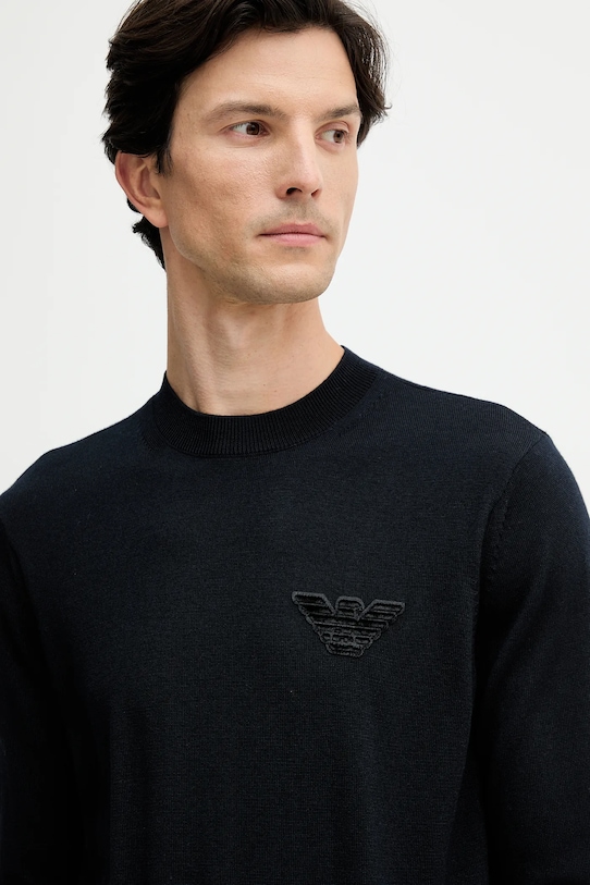 Этот свитер из коллекции Emporio Armani выполнен из тонкого эластичного трикотажа. Натуральная шерсть легче традиционной и отличается исключительной мягкостью, нежностью и прочностью. - Простой дизайн, не стесняющий движений. - Длинный рукав. - Классический круглый вырез. - Рукава и нижний край отделаны удобными эластичными манжетами. - Длина рукава: 69 см. - Длина: 68 см. - Ширина под мышками: 55 см. - Размеры указаны для размера: M.