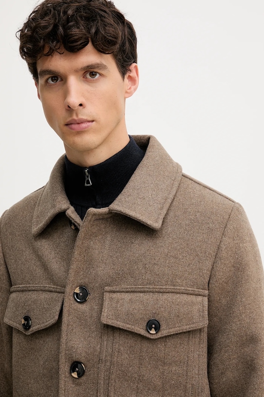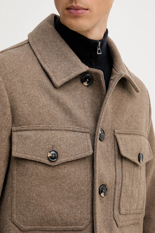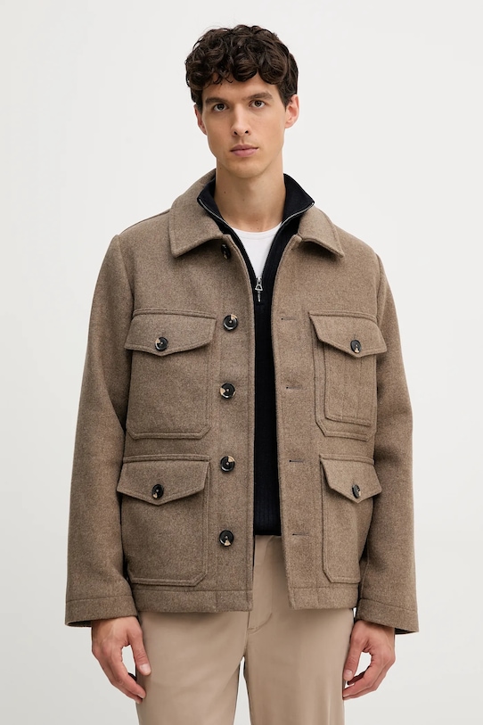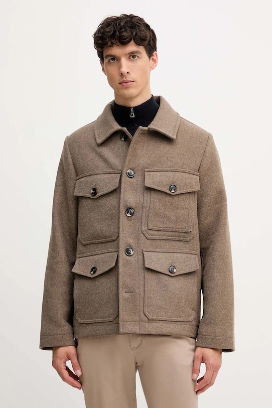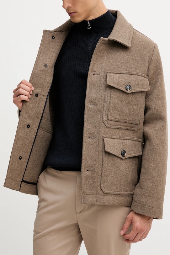 Куртка-рубашка из коллекции Tommy Hilfiger. Эта переходная модель выполнена из гладкой ткани. Высокое содержание шерсти обеспечивает защиту от холода, а добавление полиэстера повышает устойчивость к сминанию. - Простой дизайн, не стесняющий движений. - Модель с мягким воротником. - Застежка на пуговицы позволяет легко надевать и снимать. - Обширная система карманов позволяет легко и безопасно хранить мелкие предметы. - Неутепленная модель без подкладки. - Длина рукава: 67 см. - Длина: 74 см. - Ширина под мышками: 60 см. - Ширина плеч: 46 см. - Размеры указаны для размера: M.