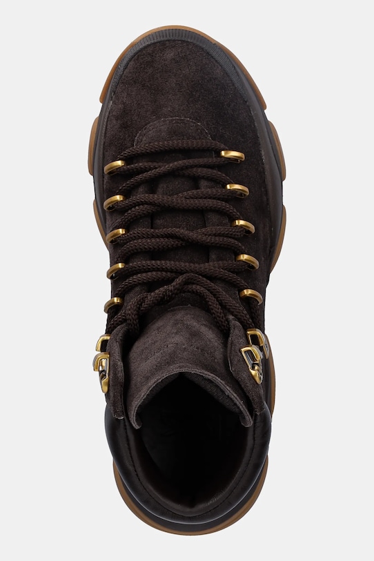 Эти ботинки Michael Kors изготовлены из замши. Они оснащены прочной и износостойкой резиновой подошвой. - Зажатый нос. - Жесткий задник стабилизирует пятку и удерживает ногу в обуви, не давая ей выскальзывать во время движения. - Уютный салон. - Классическая шнуровка позволяет индивидуально подогнать обувь по ноге. - Длина вставки: 26 см. - Размеры указаны для размера: 40.