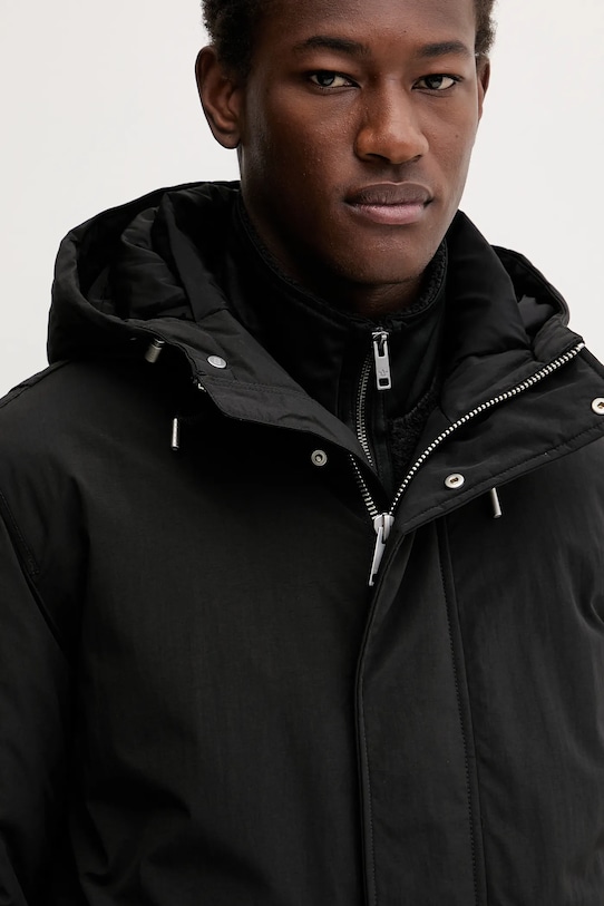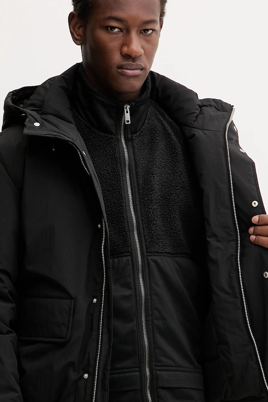 - Поднятый воротник обеспечивает дополнительную защиту от холода.