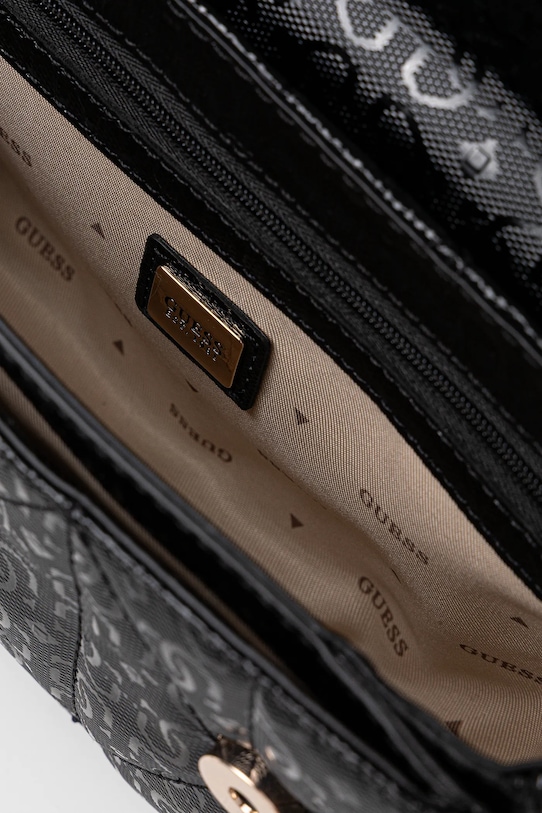 Небольшая сумочка из коллекции Guess. Модель с застёжкой-крючком, выполнена из синтетического материала. - Содержит переработанный пластик. - Клапан застегивается на магнит. - Имеет ручку и съемный регулируемый ремень. - Не подходит для формата А4. - Входящий в комплект тканевый чехол защищает изделие от пыли. - Карман на молнии на задней стороне позволяет безопасно хранить мелкие предметы. - Имеет два внутренних кармана: один прорезной, другой на молнии. - Минимальная длина ремешка: 103 см. - Длина ручки: 19 см. - Максимальная длина ремня: 117 см. - Глубина: 5,5 см. - Высота: 15 см. - Ширина у основания: 25 см.