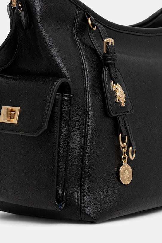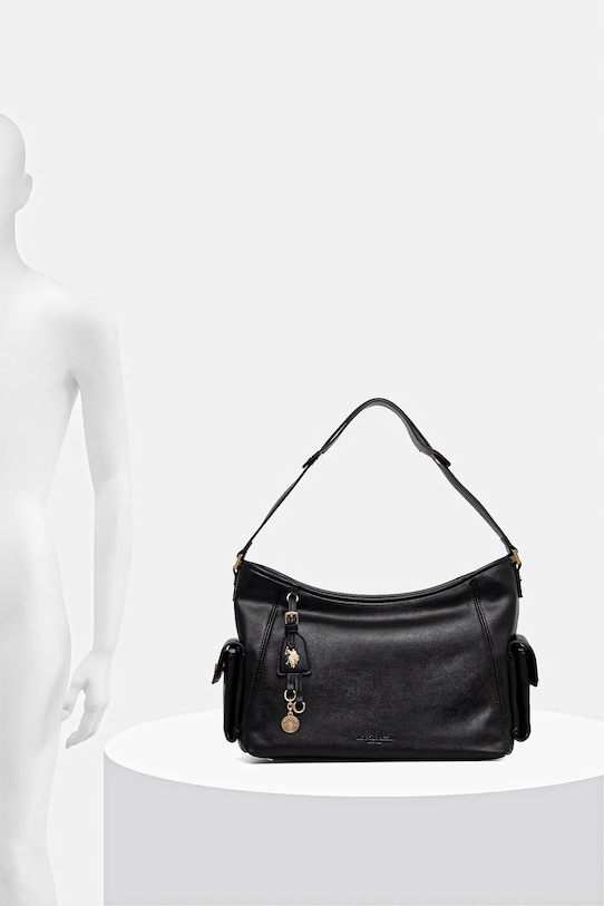 Сумка среднего размера из коллекции U.S. Polo Assn.. Модель на молнии, выполнена из экокожи. - Отделение на молнии. - Боковые карманы. - Три внутренних кармана: один на молнии, два накладных. - Модель на подкладке. - Не подходит для формата А4. - Длинная ручка для удобной переноски в руке или на плече. - В комплект модели входит брелок. - Входящий в комплект тканевый чехол защищает изделие от пыли. - Модель оснащена металлическими ножками, которые защищают дно сумки. - Глубина: 16,5 см. - Высота: 23 см. - Ширина у основания: 34 см. - Длина ручки: 61 см.
