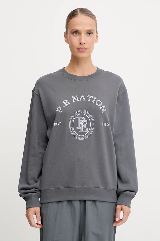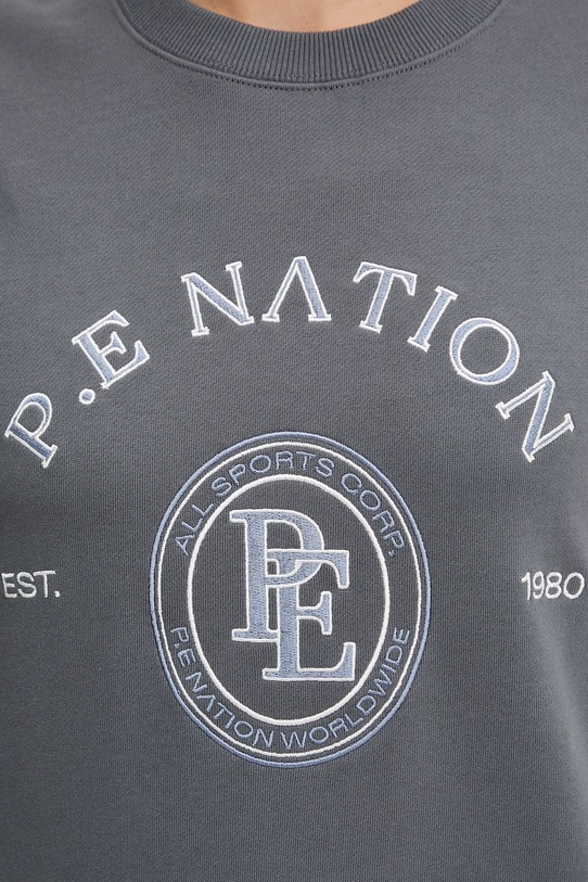 Свитшот из коллекции P. E Nation из хлопкового трикотажа. - Изделие изготовлено из органического хлопка. - Свободный крой, обеспечивающий полную свободу движений. - Крой рукава со спущенной линией плеча не ограничивает подвижность. - Круглый ребристый вырез. - Рукава и нижний край отделаны эластичной тесьмой, благодаря чему изделие лучше прилегает к телу и удобно в носке. - Модель с аппликацией. - Длина рукава (от горловины): 75 см. - Длина: 63 см. - Ширина под мышками: 56 см. - Размеры указаны для размера: S.
