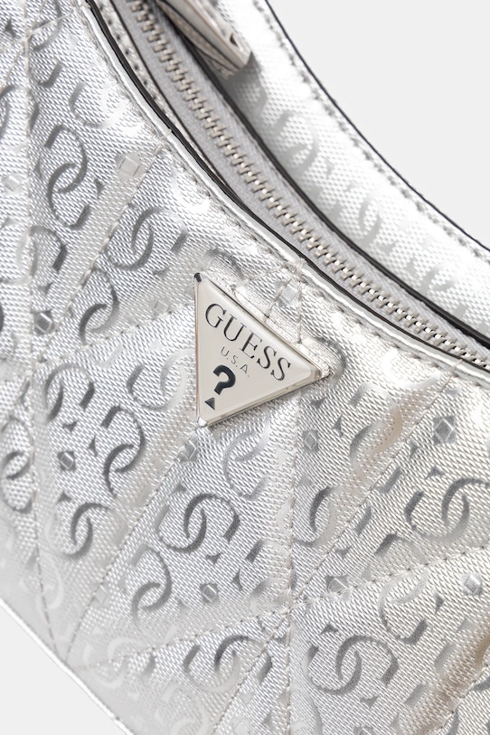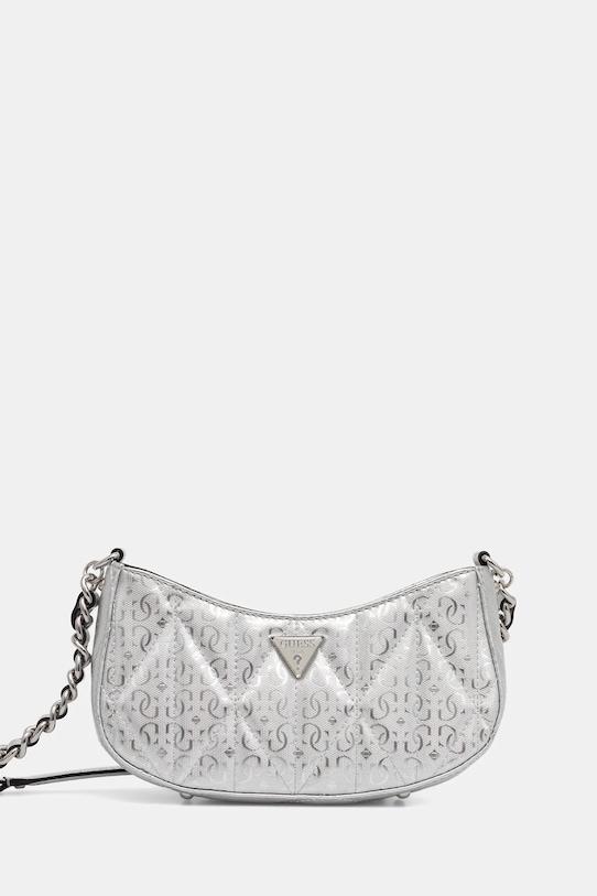 Небольшая сумочка из коллекции Guess. Модель с застёжкой-крючком, выполнена из синтетического материала. - Отделение на молнии. - Длинная ручка для удобной переноски в руке или на плече. - Модель не имеет внутренних карманов. - Количество слотов для карт: 2. - Не подходит для формата А4. - Модель оснащена металлическими ножками, которые защищают дно сумки. - Модель на подкладке. - Длина ручки: 61 см. - Глубина: 6,5 см. - Высота: 11 см. - Ширина у основания: 24,5 см.