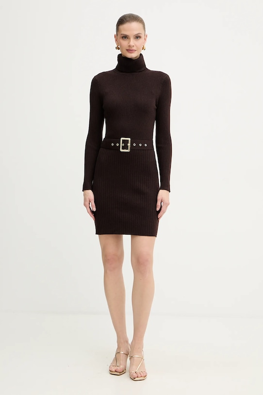 Это платье из коллекции Morgan выполнено из гладкой эластичной ткани с добавлением переработанных волокон. - Данное изделие частично изготовлено из переработанного полиэстера. - Приталенный крой, подчеркивающий силуэт. - Модель с высоким воротом. - Длинные, прилегающие рукава. - Модель без застежки. - Текстильный ремешок в комплекте. - Модель без подкладки. - Длина рукава: 60 см. - Длина: 91 см. - Ширина под мышками: 38 см. - Ширина талии: 32 см. - Ширина бедер: 42 см. - Размеры указаны для размера: S.