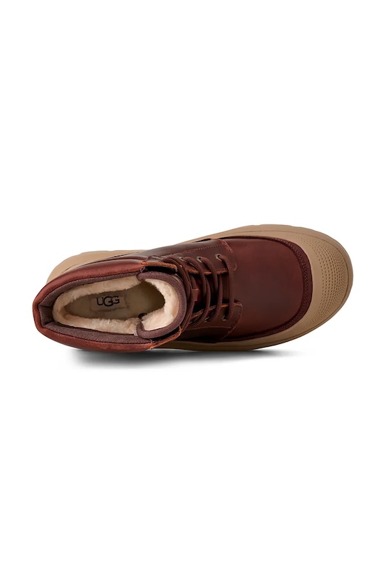 Ботинки из коллекции UGG. Изготовлены из комбинации натуральной кожи и синтетического материала, мягкая внутренняя часть обеспечивает исключительный комфорт. - Модель содержит органические и переработанные волокна, что снижает ее воздействие на окружающую среду. - UGGplush - утеплитель внутренней части обуви из комбинации высококачественной шерсти и нежного волокна лиоцелла. - Круглый, жёсткий носок. - Жесткий задник стабилизирует пятку и удерживает ногу в обуви, не давая ей выскальзывать во время движения. - Классическая шнуровка позволяет индивидуально подогнать обувь по ноге. - Прочная рифленая подошва обеспечивает надежное сцепление с землей. - Приподнятый верх помогает укрепить ногу в области лодыжки, что защищает от неконтролируемых движений и травм. - Подошва из пеноматериала обеспечивает более мягкое ощущение и дополнительную амортизацию. - Обеспечивает комфорт использования до -20°С.