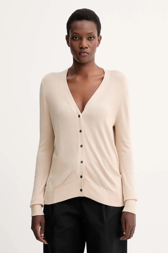 Этот кардиган из коллекции Calvin Klein выполнен из тонкого трикотажа. Он невероятно мягкий. - Простой дизайн, не стесняющий движений. - Удобная застежка на кнопки позволяет легко надевать и снимать. - Рукава и нижний край отделаны удобными эластичными манжетами. - Длина рукава: 70 см. - Длина: 63 см. - Ширина под мышками: 47 см. - Размеры указаны для размера: S.