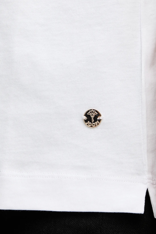 Эта футболка из коллекции Joop! выполнена из тонкой эластичной ткани. Модель выполнена из дышащего хлопкового материала. - Свободный крой, обеспечивающий полную свободу движений. - Классический круглый вырез. - Крой рукава со спущенной линией плеча не ограничивает подвижность. - Плоские швы защищают кожу от натирания и раздражения и обеспечивают высокий уровень комфорта во время занятий спортом. - Модель с принтом и декоративной аппликацией. - Длина: 63 см. - Ширина под мышками: 52 см. - Размеры указаны для размера: 34.