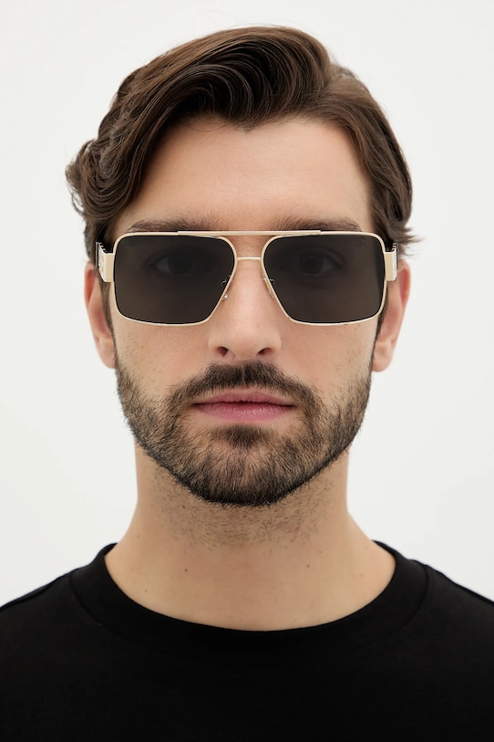 Солнцезащитные очки из коллекции Versace. Модель с гладкими линзами и металлической оправой. Защита от ультрафиолета UV 400. - Форма оправы: авиатор. - В комплект модели входят чехол и салфетка для протирки очков. - Категория 3 (пропускает 8–18% света) - самая распространённая и универсальная категория затемняющих фильтров. Очки категории 3 идеально подходят для повседневного использования в солнечные дни и для отдыха в жарких странах. - Фильтр UV 400 обеспечивает максимальную защиту от солнечного излучения. - Ширина линзы: 59 мм. - Ширина рамы: 134 мм.
