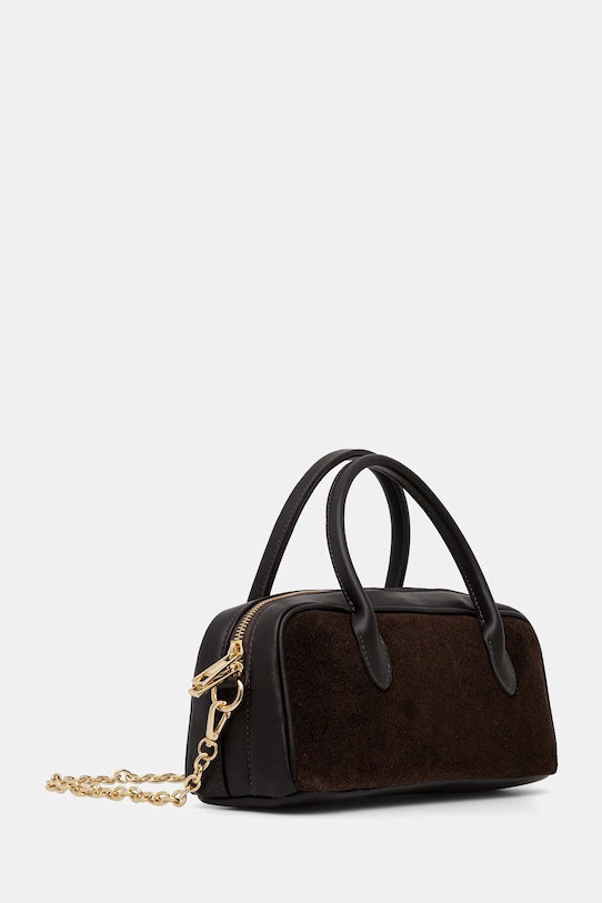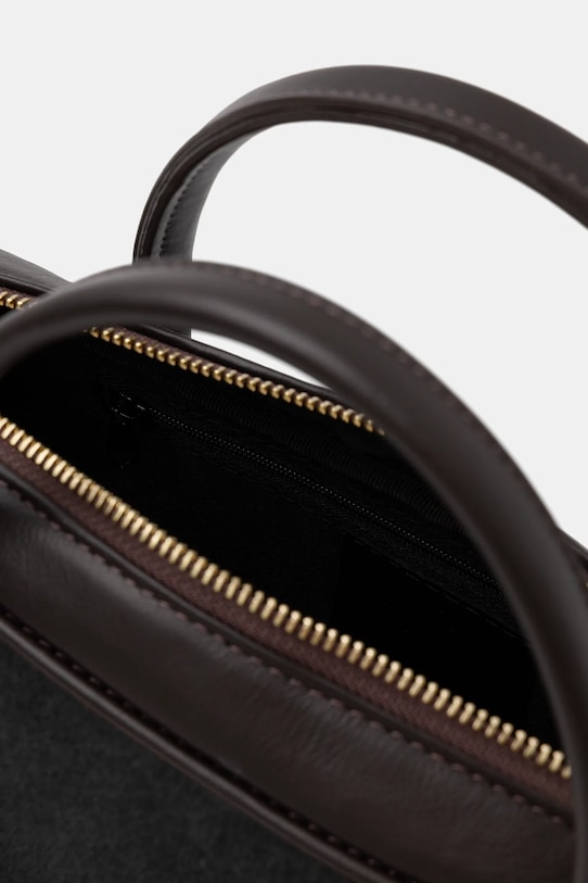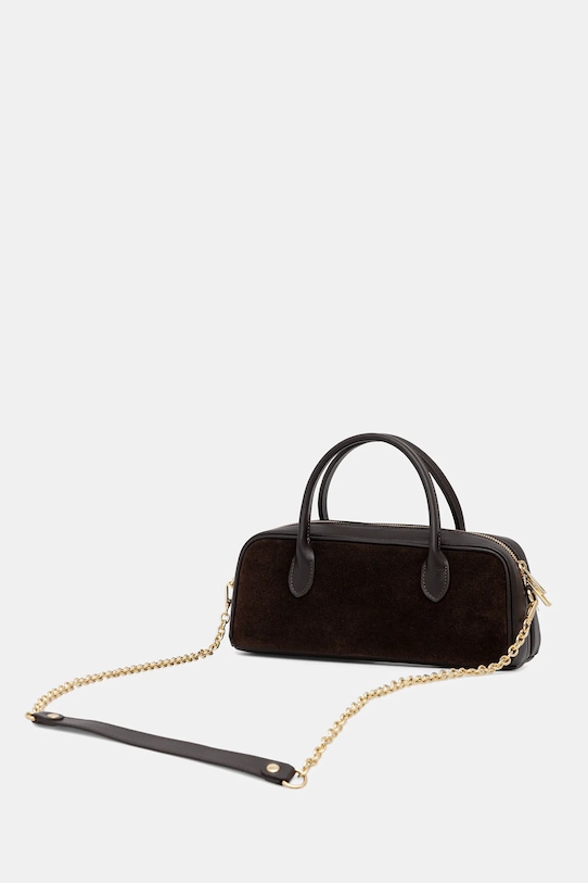 Небольшая сумочка из коллекции Answear.Lab. Застёгивается на молнию, выполнена из комбинации замши и натуральной кожи. - Отделение на молнии. - Внутренний карман на молнии. - Имеет ручки и съемный нерегулируемый ремень. - Не подходит для формата А4. - Входящий в комплект тканевый чехол защищает изделие от пыли. - Длина ручки: 32 см. - Глубина: 10 см. - Высота: 12 см. - Ширина у основания: 30 см. - Длина ремешка: 138 см.