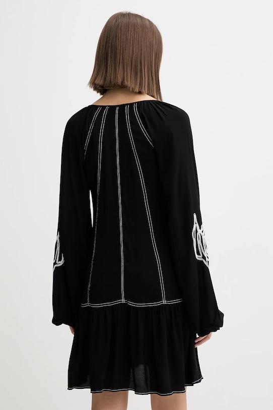 Это платье из коллекции Desigual выполнено из тонкой, неэластичной ткани. Модель выполнена из дышащего вискозного материала. - Модель мини-длины. - Расклешенный крой. - Длинные, широкие рукава. - Острый вырез с декоративной шнуровкой. - Модель с декоративной вышивкой. - Длина рукава (от горловины): 77 см. - Длина: 91 см. - Ширина под мышками: 47 см. - Размеры указаны для размера: S.