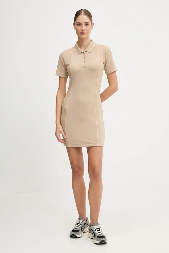 Это платье из коллекции Guess выполнено из тонкого, высокоэластичного трикотажа. Модель выполнена из исключительно комфортного материала с высоким содержанием вискозы. - Изготовлено из экологически чистого материала LENZING ECOVERO. LENZING ECOVERO производится из органической целлюлозы и древесной массы, используя на 50% меньше воды, чем популярная вискоза. - Приталенный крой, подчеркивающий силуэт. - Застежка на короткие пуговицы обеспечивает эффективную вентиляцию и легкость надевания и снимания. - Модель с мягким воротником. - Короткий рукав. - Модель без подкладки. - Длина: 88 см. - Ширина под мышками: 43 см. - Ширина талии: 36 см. - Ширина бедер: 43 см. - Размеры указаны для размера: S.