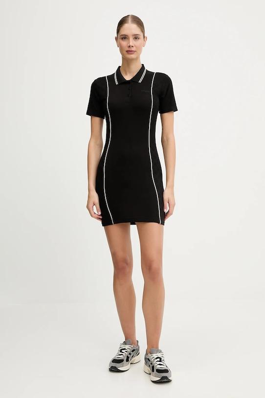 Это платье из коллекции Guess выполнено из тонкого, высокоэластичного трикотажа. Модель выполнена из исключительно комфортного материала с высоким содержанием вискозы. - Изготовлено из экологически чистого материала LENZING ECOVERO. LENZING ECOVERO производится из органической целлюлозы и древесной массы, используя на 50% меньше воды, чем популярная вискоза. - Приталенный крой, подчеркивающий силуэт. - Застежка на короткие пуговицы обеспечивает эффективную вентиляцию и легкость надевания и снимания. - Модель с мягким воротником. - Короткий рукав. - Модель без подкладки. - Длина: 88 см. - Ширина под мышками: 43 см. - Ширина талии: 36 см. - Ширина бедер: 43 см. - Размеры указаны для размера: S.