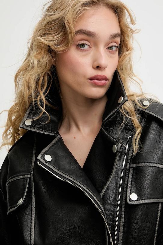 Байкерская куртка из коллекции Answear.Lab. Эта модель без подкладки выполнена из экокожи. Нижний край куртки затягивается шнурком для индивидуальной посадки. - Свободный крой, обеспечивающий полную свободу движений. - Крой рукава со спущенной линией плеча не ограничивает подвижность. - Удобная застежка-молния сбоку позволяет легко надевать и снимать. - Манжеты застегиваются на кнопки. - Два накладных кармана спереди. - Модель на подкладке. - Погоны на плечах. - Длина рукава (от воротника): 77 см. - Длина: 52 см. - Ширина под мышками: 53 см. - Указаны размеры: S/M.