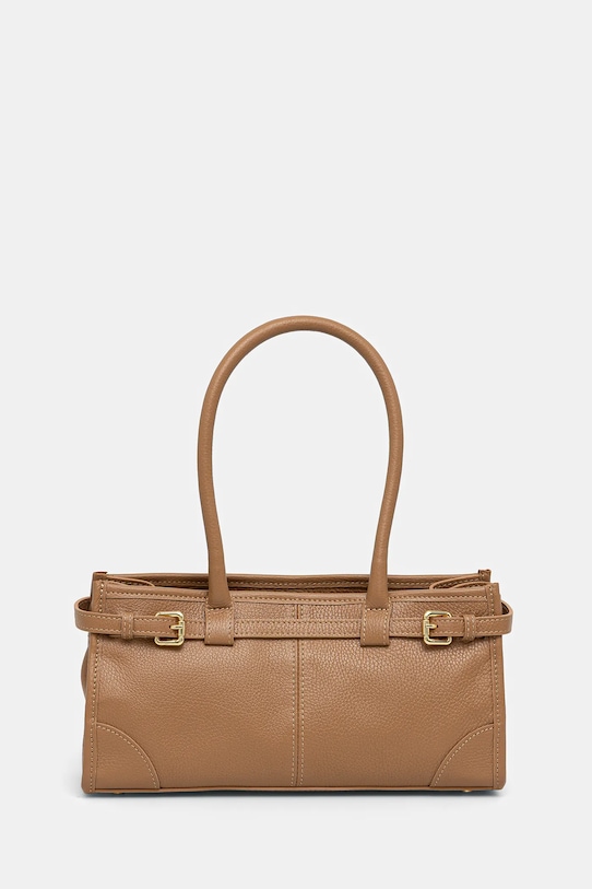 Небольшая сумочка из коллекции Answear.Lab. Модель на молнии из натуральной кожи. - Отделение на молнии. - Внутренних карманов нет. - Модель на подкладке. - Не подходит для формата А4. - Длинные ручки. - Модель оснащена металлическими ножками, которые защищают дно сумки. - Входящий в комплект тканевый чехол защищает изделие от пыли. - Глубина: 11,5 см. - Высота: 16 см. - Ширина у основания: 32,5 см. - Длина ручки: 56 см.