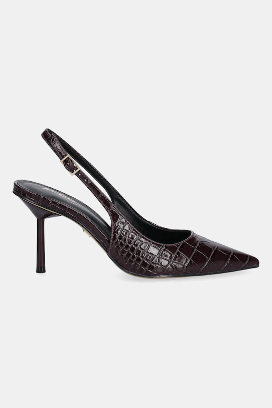 Эти туфли-шпильки из коллекции Aldo изготовлены из экокожи. Модель оснащена мягкой стелькой для комфорта. - Pillow Walk - удобная стелька из пеноматериала двойной плотности, обеспечивающая стопе амортизацию и комфорт. - Заостренный, жесткий нос. - Модель с открытой пяткой. - Застежка-пряжка со штифтом для индивидуальной подгонки. - Модель на шпильке. - Высота каблука: 9 см. - Длина вставки: 22 см. - Размеры указаны для размера: 36.